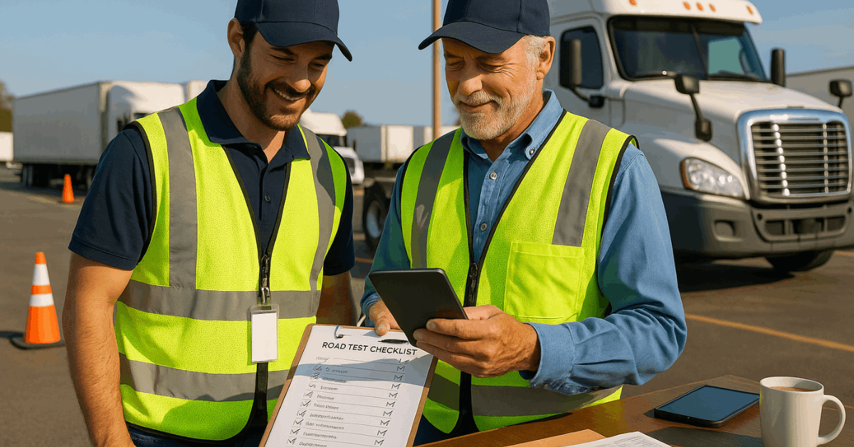 - Road test scheduled against the driver road test checklist that mirrors real duty cycles and terrain.