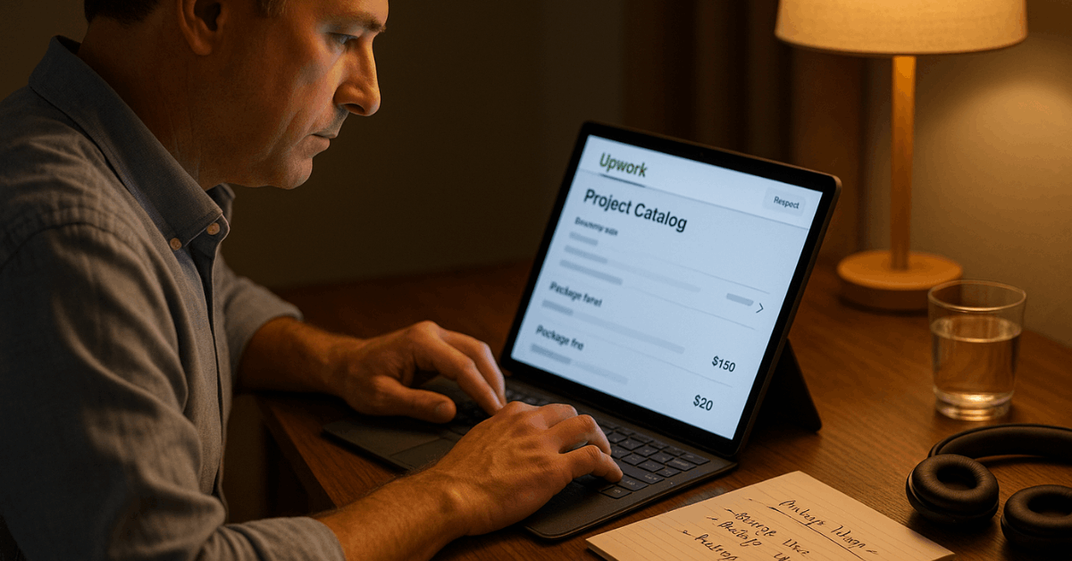 After establishing a baseline, expand into the Project Catalog on Upwork with predefined packages clients can buy instantly.